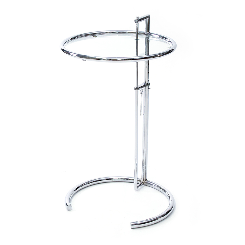 Dieser Beistelltisch lehnt sich an das Design der 20er Jahre an. Die Tischplatte ist aus Glas und das Gestell ist verchromt. Die Höhe ist flexibel einstellbar. Das zeitlose Design macht diesen Tisch zu einem echten Hingucker für ihren Lounge-oder Empfangsbereich.