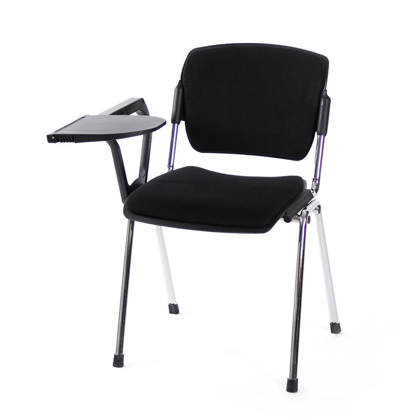 Dieser robuste aber doch recht bequeme Stuhl hat ein Schreibtablar, damit Sie Ihre Notizen während eines Event`s mitschreiben können. Das Stuhlgestell hat eine Chromoptik und die Polsterung an Rückenlehne und der Sitzfläche ist in schwarz gehalten. Eignet sich ideal für Tagungen, Kongresse oder Präsentationsveranstaltungen.