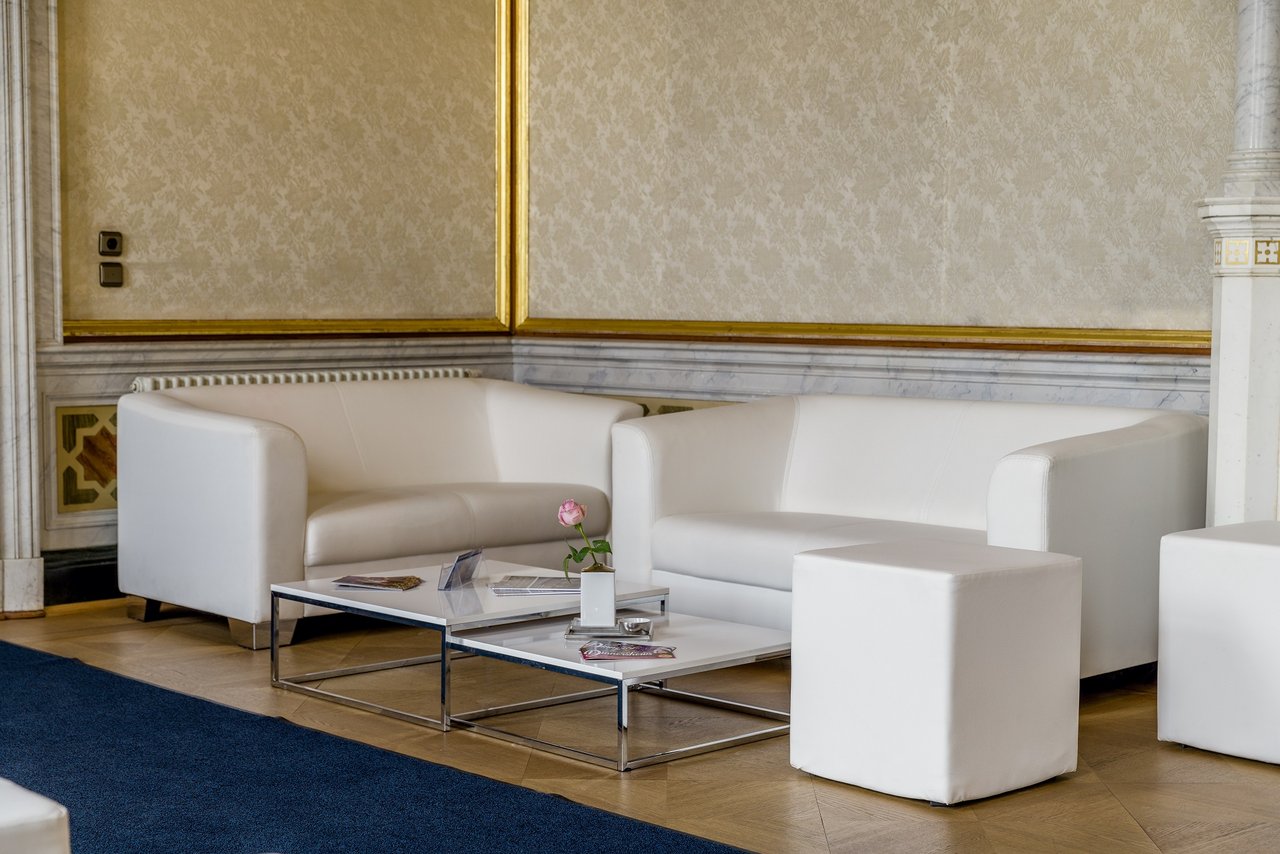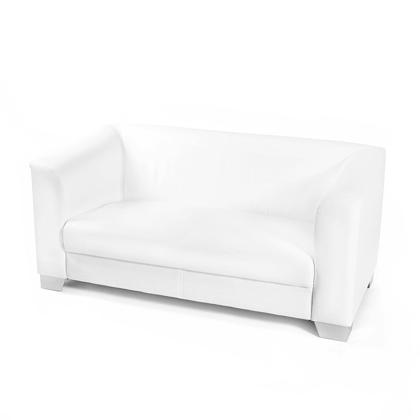 Dieses bequeme Sofa aus unserer Virginia-Serie besteht aus eleganten weißem Kunstleder und bietet zwei Personen Platz. Die Eck-Stand Füße sind aus Aluminium. Hervorragend eignet es sich für jeden Loungebereich, für jede Party oder auch als Sitzelement in einem Showroom. Unser Lederhocker oder der Loungetisch sind die passenden Ergänzungen dazu.