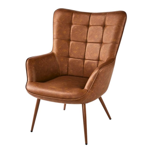Dieser gemütliche Ohrensessel aus braunen Kunstleder, überzeugt Dank seiner hohen Rückenlehne und breiten Sitzfläche für einen hohen Sitzkomfort.