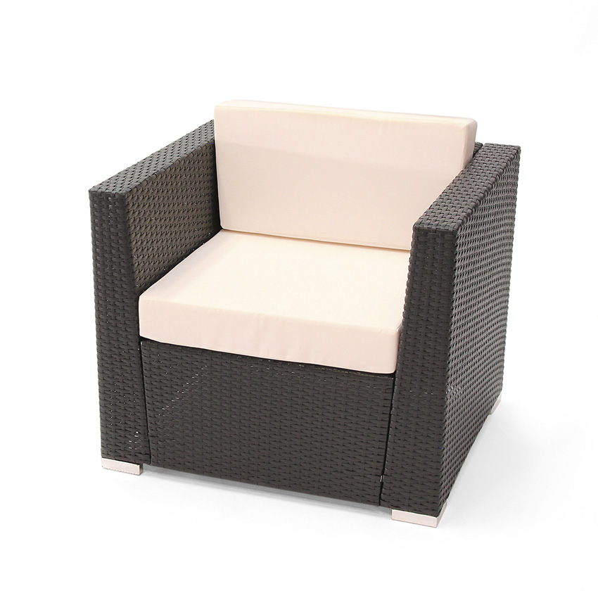 Der Sommer kann kommen – die Outdoor-Lounge steht bereit. Dieser Loungsessel in mediterranem Flair hat ein anthrazitfarbenes Kunststoffgeflecht in Rattanoptik und ist Wetterfest. Sitzkissen und Rückenpolster sind inklusive. In Kombination mit unserem Terrassenzweisitzer und Terrassentisch Riva ergibt dies ein wunderschönes Bild bei Ihrem Sommerfest, Ihrer Terrassenparty oder Ihrer Lounge-Fete.