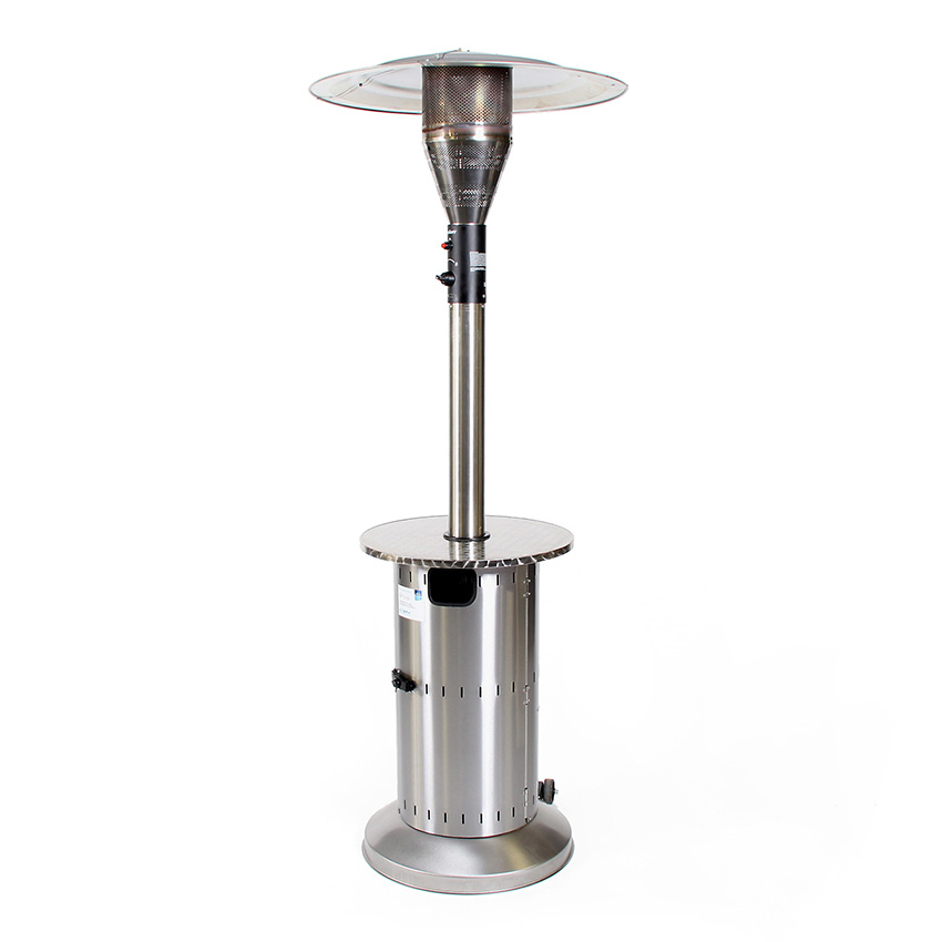 Dieser Heizstrahler ist der Profi unter den Spezialisten. Als Gas-Terrassenheizstrahler eignet er sich sowohl für gewerbliche Anwendungen als auch für anspruchsvolle Privatnutzer. Der angebrachte Tisch eignet sich als „stummer Diener“ für alles was man bei einem gemütlichen Beisammensein auch mal aus der Hand legen möchte. Die 14 kW Leistungsstärke überzeugt mit einer angenehmen Wärme, selbst an richtig klirrend kalten Tagen. Die Ablage für die Gasflasche ermöglicht ein unkompliziertes Austauschen der Gasflasche. Die Säule ist versenkbar und kann somit platzsparend verstaut werden. Erhältlich ohne Gasflasche.
