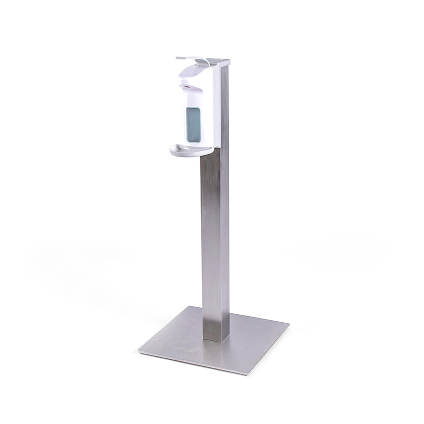 Diese freistehende Hygienespendereinheit ist ideal für den Einsatz in stark frequentieren Bereichen. Zum Beispiel in Eingangsbereichen, für Arztpraxen, im Restaurant, Museen, Ämtern, Einzelhandel usw. Eine stabile, schwere Bodenbasis bewahrt das System vor dem Umkippen und gibt sicheren Stand. Desinfektionsmittel sind nicht im Lieferumfang enthalten.