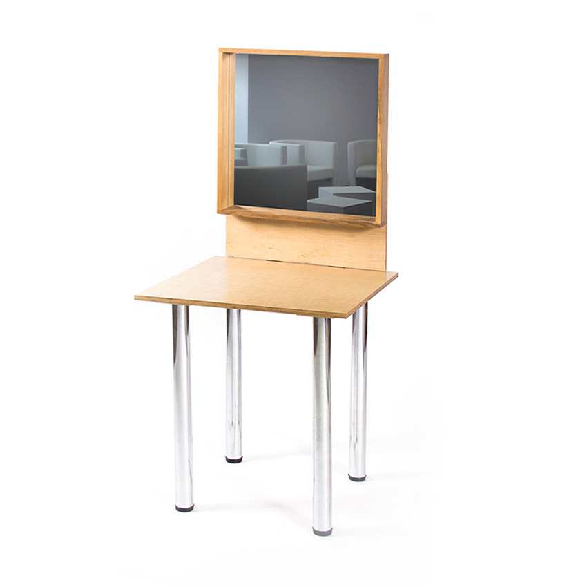 Dieser Schminktisch ist ein absolutes Muss hinter jeder Bühne. Er steht auf 4 Metall-Standfüßen in Edelstahloptik, welche dazu noch höhenverstellbar sind. Der Tisch ist einklappbar, lässt sich also auch sehr leicht transportieren.