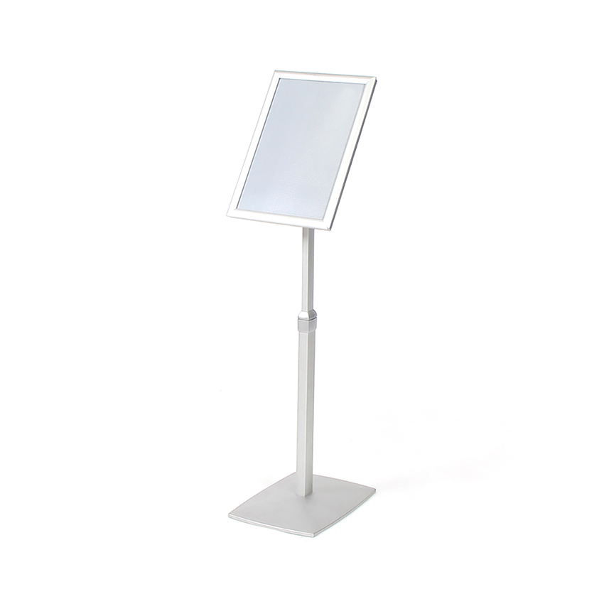 Dieser praktische Infoständer im DIN A3 Format kann wahlweise im Quer oder im Hochformat aufgestellt werden. Dank des praktischen DIN A3 Klapprahmens kann das Motiv schnell und ganz einfach gewechselt werden. Der Infoständer besteht aus Aluminium und ist dazu noch höhenverstellbar.