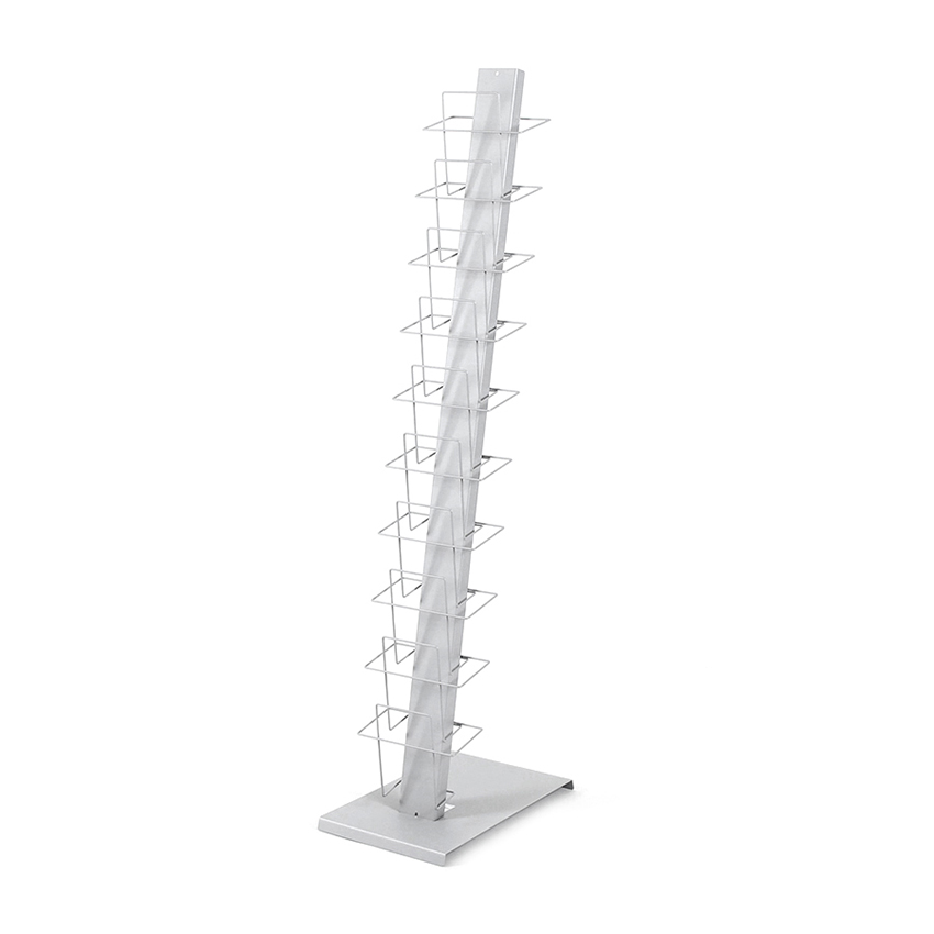 Dieser Prospekt / Zeitungsständer hat einen Standfuß und 10 Drahthalter, in welche Ihre DIN A4 Prospekte, Zeitungen oder Magazine problemlos eingebracht werden können. Das Gestell ist aus pulverbeschichteten Stahl und hat die Farbe silber. Ideal für den Einsatz auf Messen, aber auch für alle anderen Veranstaltungen geeignet.