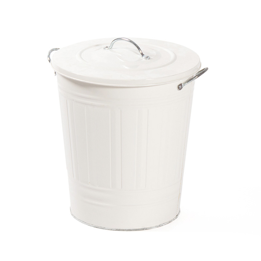 Dieser Metallmülleimer mit abnehmbaren Deckel hat eine schöne nostalgische Optik. Sein beschichtetes Aluminiumgehäuse in der Farbe Beige verleiht ihm ein schönes Aussehen und hält den Rost fern. Sein Fassungsvermögen beträgt 40 Liter. An beiden Seiten sind Griffe für den Transport angebracht.